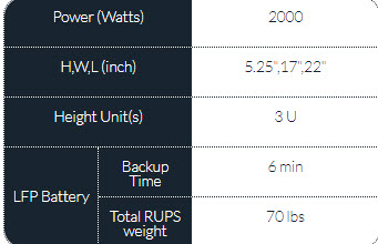 The Rugged UPS delivers a continuous power of 2500VA/2000W.