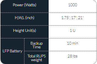 The Rugged Blade UPS delivers a continuous power of 1250VA/1000W. It is designed to support parallel operations when more power is required. Up to 8 units can be connected in parallel delivering a total continuous power of 10,000VA/8,000W.